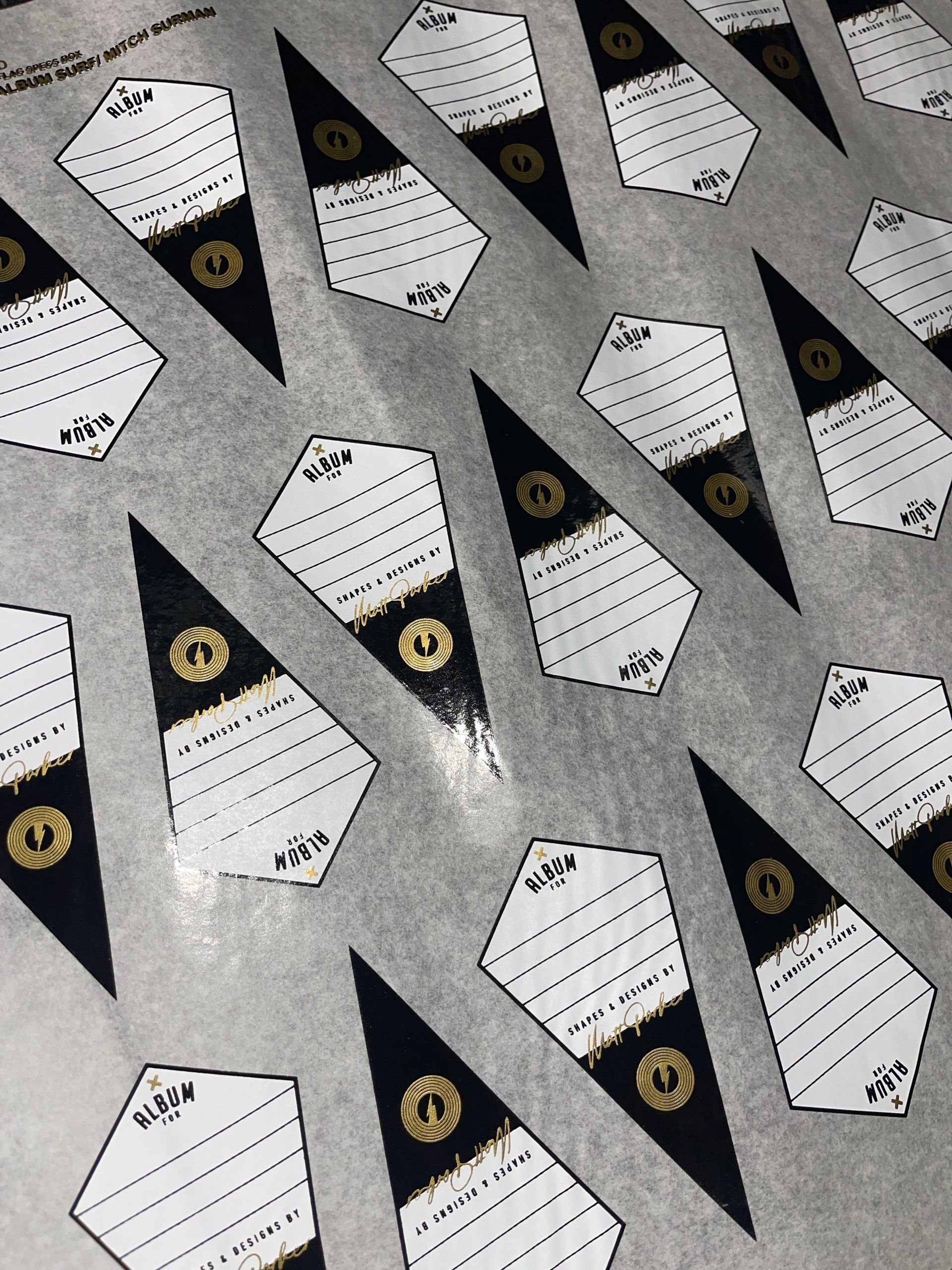 Our screen printed decals are the most economical form of surfboard laminates when ordering quantity. With the screen printing process, we can produce from a quantity of just ten sheets up to hundreds of sheets at a time.